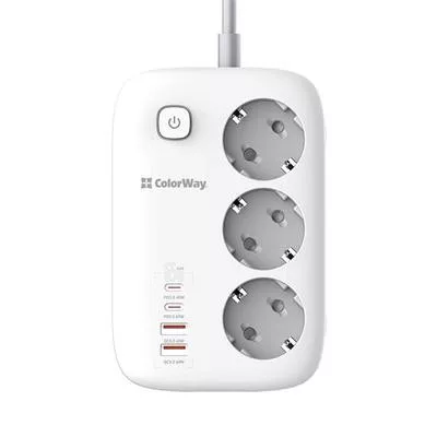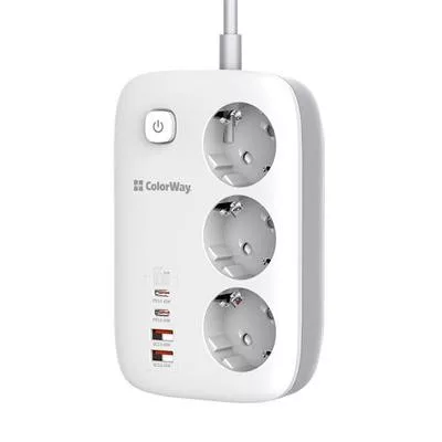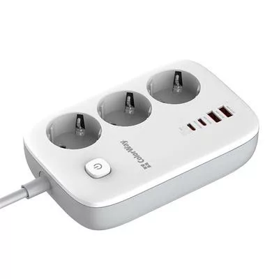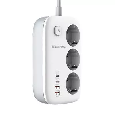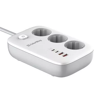 Compact extension cord with three 220V power outlets and 2 USB ports supporting Quick Charge 3.0/4.0 fast charging technology, and 2 USB-C PD with support for PD (Power Delivery) 2.0/3.0 protocols, 65W PPS; APPLE FAST CHARGE; SAMSUNG 5V-2A/AFC/SFC; QC2.0/3.0/4.0+; HUAWEI FCP/SCP,VOOC, XIAOMI 27W TURBO CHARGING. The device has a thoughtful design that allows you to simultaneously connect not only electrical appliances, but also simultaneously charge up to four mobile devices without any difficulty. At the same time, intelligent control technology determines and provides the optimal voltage for each device, while a special chip protects against load, short circuit or overheating. The charger belongs to a new generation, in which gallium nitride is used instead of silicon transistors. Thanks to this, the charger practically does not heat up, consumes less energy and charges gadgets faster than conventional power adapters. The maximum power of 65 W is enough to recharge not only small gadgets, but also energy-intensive devices such as laptops. The extension cord is equipped with protective curtains using Child Security Door technology, as well as a convenient on/off button and LED indication. Contact groups of sockets are made of high-quality copper alloy. The body is made of heat-resistant plastic that can withstand temperatures up to 750C°.