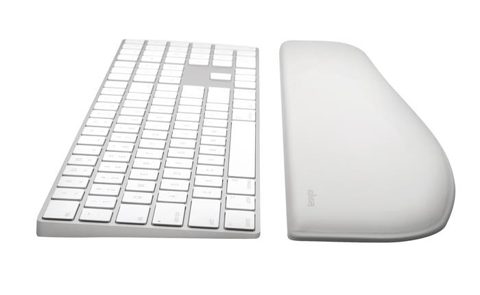 Ergonómikus kialakítású csuklótámasz, mely elősegíti a csukló természetes tartását.