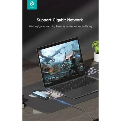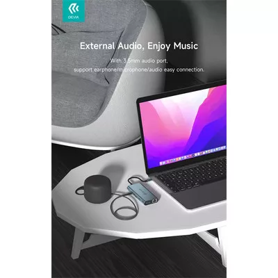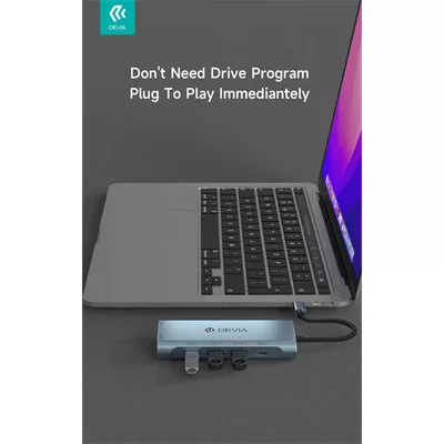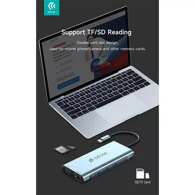 DEVIA ST399992 Leopard 11in1 3xUSB/Type-C/PD/HDMI/VGA/RJ45/Kártyaolvasó/Jack elosztó adapter Hub-szürke