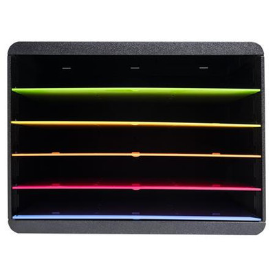 Színes dokumentum szortírozó-méret: 270 x 355 x 271 mm-rekeszek száma: 5-színe: fekete-formátum: A4+-alkalmas fekvő tájolású dokumentumok, pl. adatlapok tárolására-anyaga: műanyag-rakásolható-25 év garancia