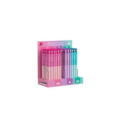 Grafitceruza display, HB, B, 2B, háromszögletű ICO "Süni", világos pasztell színek