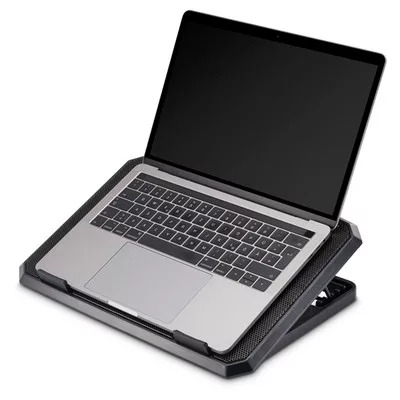 TermékjellemzőkHűtőventilátorral felszerelt notebook tartó max. 40 cm (15,6") képátmérőjű készülékekhezHűti a notebookot és biztosítja az optimális légáramlást, ezáltal megelőzi a túlmelegedéstDönthető, a kényelmes pozíció beállítása érdekébenUSB aljzatról működtethetőKék LED megvilágításCsúszásmentes, gumírozott aljzatKijelző mérete: 34 cm - 40 cm (13,3 "- 15,6")Ventilátorok száma: 2 dbFogyasztás: 480 mAZajszínt: 25 dBSúly: 800 grammSzín: fekete