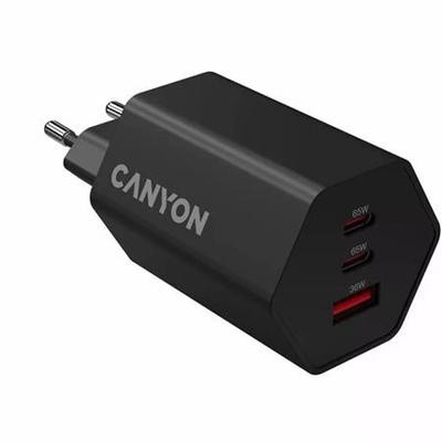 Hálózati töltő, 1xUSB-A, 2xUSB-C, 65W, CANYON "Hexagon 65", fekete
