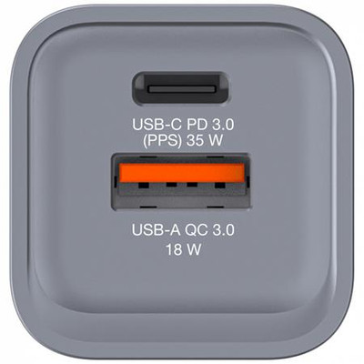 Támogatja akár 2 eszköz egyidejű töltését is, (max 35 W teljes teljesítménnyel) egy karcsú, tenyérnyi kialakításban. Összecsukható egyesült államokbeli száraival és cserélhető EU- és UK-dugaszaival a tökéletes útitárs. -Galliam Nitride (GaN) technológia: nagy teljesítményű, gyors és hatékony töltést biztosít, és kevesebb hőt termel -1 x USB-C® PD 3.0 35 W-ig -1 x USB-A QC 3.0 18 W-ig -szupergyors töltés az USB Power Delivery 3.0, PPS és Quick Charge 3.0 segítségével -programozható tápegység (PPS) technológia az ideális töltéshez szükséges megfelelő mennyiségű energiát biztosítja -kiváló minőségű, lángálló anyagokból készült -túláram elleni védelem -túlfeszültség elleni védelem -rövidzárlat elleni védelem -túlmelegedés elleni védelem -anyaga: Műanyag Ház: PC Tűzálló anyag -méretek: 49 x 32 x 31 mm (Szé x Ma x Mé) -súly: 56 g -műanyagmentes csomagolás -csomag tartalma: GaN töltő EU adapter UK adapter gyors üzembe helyezési útmutató