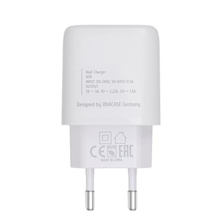 Hálózati töltő, 20W, USB-C (PD 3.0), USB-C töltőkábel, RIVACASE "PS4191", fehér