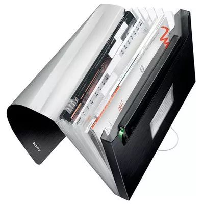 Harmonikamappa, A4, PP, 6 rekeszes, LEITZ "Style", szaténfekete