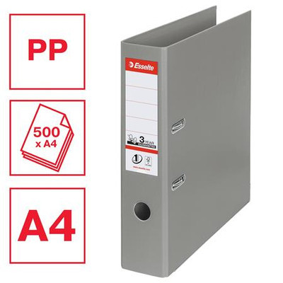 Iratrendező, 75 mm, A4, PP, élvédő sínnel, ESSELTE "Standard", szürke