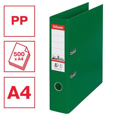Iratrendező, 75 mm, A4, PP, élvédő sínnel, ESSELTE "Standard", zöld