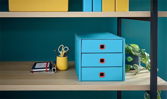 Irattároló, laminált karton, 3 fiókos, LEITZ "Cosy Click&Store", nyugodtkék