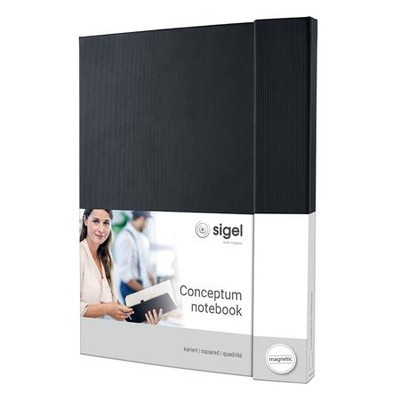 Jegyzetfüzet, exkluzív, A4+, kockás, 97 lap, mágneses záródású, keményfedeles, SIGEL "Conceptum", fekete