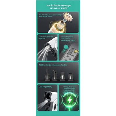 - Nincs lemerült akkumulátor! 30%-kal gyorsabb töltés a versenytársakhoz képest – több fújás, kevesebb várakozás.
