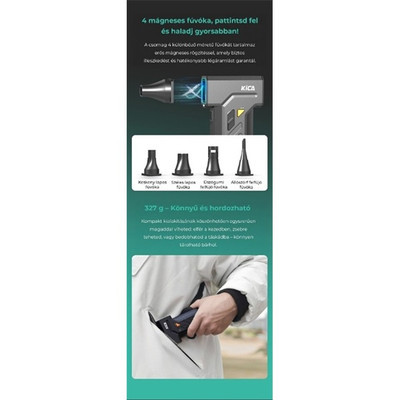 - 48 m/s-os extrém légáram (185 g tolóerő) 180,1 CFM erővel fújja el a makacs port – 10-szer erősebb, mint a sűrített levegő!