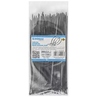 Kábelkötegelő, gyorskötöző, 2,5x200mm, DONAU "Tech", fekete