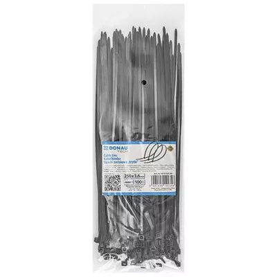 Kábelkötegelő, gyorskötöző, 3,6x250mm, DONAU "Tech", fekete