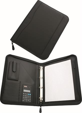 Konferencia mappa, A4, műbőr, gyűrűs szerkezettel, számológéppel, fekete