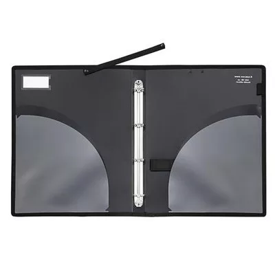 Viquel gyűrűs könyv-méret: 27,5x34,5x3 cm-4 gyűrűs kivitel, 2,5 cm-s gyűrűátmérő-állítható hátsó szíj a kényelmes fogásért-2 dupla zseb-oldalán tolltartópánt-névjegy tartóval-rögzítő pánt-szín: feketeGyártó/első EU forgalmazó elérhetősége: VIQUEL SAS14 Rue de Mantes 92700 Colombes - Francelpalix@viquel.fr, ijourdain@viquel.frwww.viquel.fr