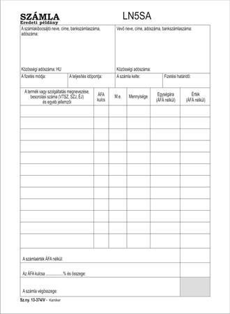 Nyomtatvány, számlatömb, egy ÁFÁs, 50x3, A5, VICTORIA PAPER, "B.13-374", 10 tömb/csomag