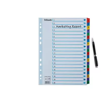 - 1-20 felirattal rendelkező regiszter fülek a dokumentumok gyors eléréséhez