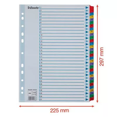 - 1-31 felirattal rendelkező regiszter fülek a dokumentumok gyors eléréséhez