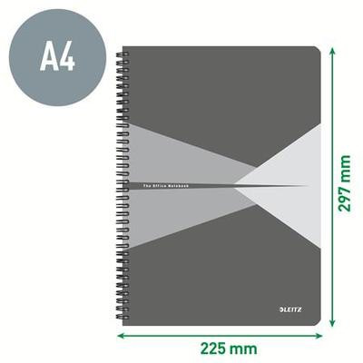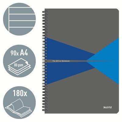 Spirálfüzet, A4, vonalas, 90 lap, laminált karton borító, LEITZ "Office", szürke-kék