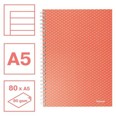 Spirálfüzet, A5, vonalas, 80 lap, ESSELTE "Colour'Breeze", korall