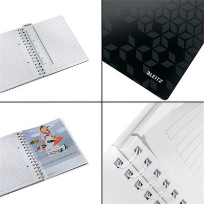 -lefűzhető tasakkal a különálló lapok számára-kettős színhatású PP borító kívül WOW színekben és dombornyomott felülettel, belül fehér színben-mikropreforált és lyukasztott lapok-könyvjelzőként is használható vonalzó-kerettel ellátott vonalazás, fejléccel a cím és dátum feltüntetéséhez minden oldalon-80 lapos-80 g-os magas fehérségű papírból-FSC® tanúsítvánnyal rendelkezik
