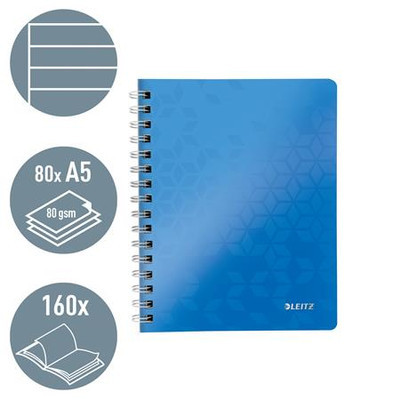 Spirálfüzet, A5, vonalas, 80 lap, LEITZ "Wow", kék