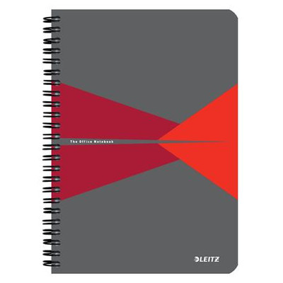Spirálfüzet, A5, vonalas, 90 lap, PP borító, LEITZ "Office", szürke-piros