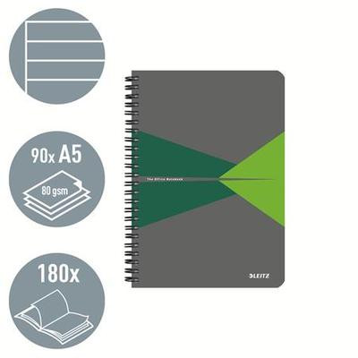 Spirálfüzet, A5, vonalas, 90 lap, PP borító, LEITZ "Office", szürke-zöld