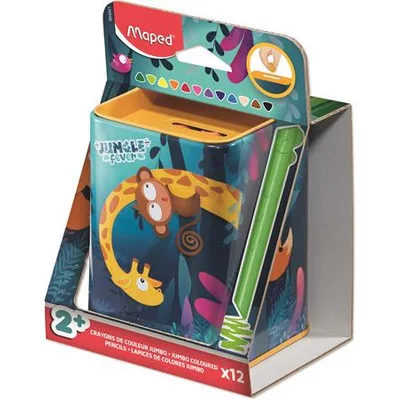 Színes ceruza készlet, fém perselyben, MAPED „Jungle Fever Infinity Kidy”, 12 különböző szín