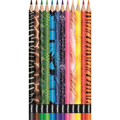 Színes ceruza készlet, háromszögletű, MAPED "Color'Peps Animal", 12 különböző szín