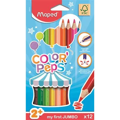 Színes ceruza készlet, háromszögletű, vastag, MAPED "Jumbo", 12 különböző szín