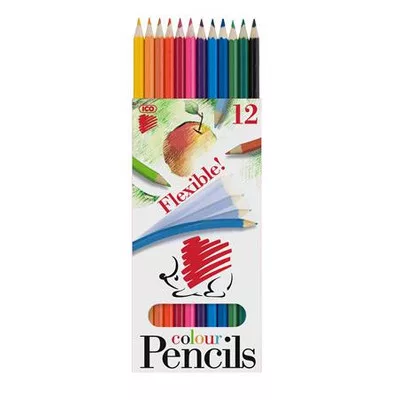 Színes ceruza készlet, hatszögletű, hajlékony, ICO "Süni", 12 különböző szín