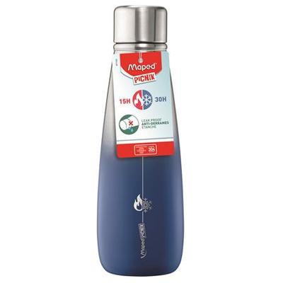 Elegáns megjelenésű rozsdamentes acél palack, mely 15 órán át melegen és 30 órán át hidegen tartja kedvenc italát. - tökéletesen záródó, mégis könnyen kezelhető, csavaros kupak - szivárgásmentes - rozsdamentesacél test - vákuumszigetelés, ami megakadályozza a külső páralecsapódást - űrtartalom: 500 ml - a MAPED "Concept Adult" uzsonnás táskákba könnyen behelyezhető