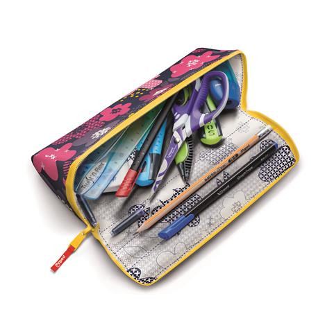 OPEN XXL: tegyük egyedivé a tolltartónkat! Eredeti és stílusos háromszög alakú, XXL-es nyílással rendelkező Maped tolltartó, amely ideális, hogy pillanatok alatt megtaláld kedvenc írószereidet! - háromszög alakú formájának és részben bordázott felületének köszönhetően könnyű megtalálni a tollakat - kifordítható, 2 különböző megjelenés érhető el - személyre szabható: a színezésre szánt oldal végtelen számú alkotást tesz lehetővé - kimosható színezőezközök használata mellett, 30° fokon mosható - strapabíró anyag (2 réteg 300D poliészter) - nagyméretű, színes cipzár a maximális nyitáshoz - színe: rózsaszín - mérete: 22,5 × 7,5 × 7,5 cm
